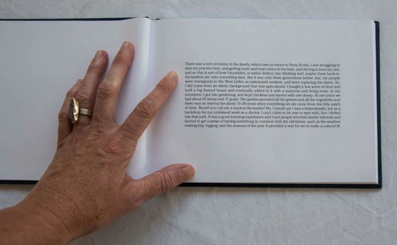 I was commissioned to create work examining the relationship between Back-to-the-Landers and their homes for the show Doing Our Own Thing: Back-to-the-Land in Eastern Canada co-curated by Amish Morrell and Pan Wendt at the Confederation Arts Centre in Charlottetown, Prince Edward Island. The project involved interviews and documentation of homes in both Prince Edward Island and my own home community of Pictou County, Nova Scotia. I became interested in taking photographs of interior spaces most important to the people living in their homes, while recording memories of the home and whether they identified with the back-to-the-land movement.The challenge was created by what emerged. It was a malleable and imprecise history. I wanted a document that connected myself with the past, a document capable of addressing the back-to-the-land movement as a complex and conflicted conversation between the land, the culture, and the people. Something unexpected occurred, despite my initial attempts, or desires, to create a corrective to the idealized way I saw this history of back-to-the-land being remembered and told.